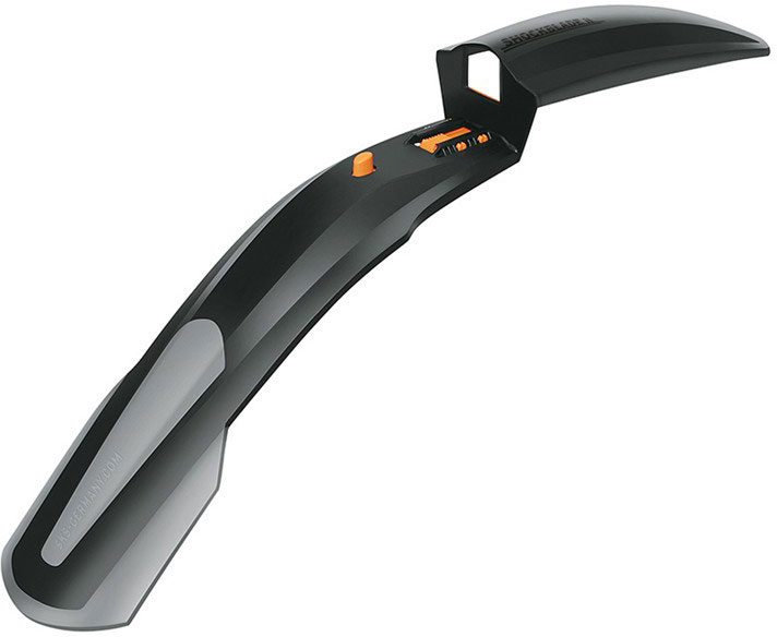 model od r.2013 - SCHOCKBLADE II přední blatník na odpruženou vidlici s gumovou lopatkou pro kola 26-27,5" s redukcemi do všech sloupků vidlice 15-35 mm včetně TAPERED hmotnost 101 g