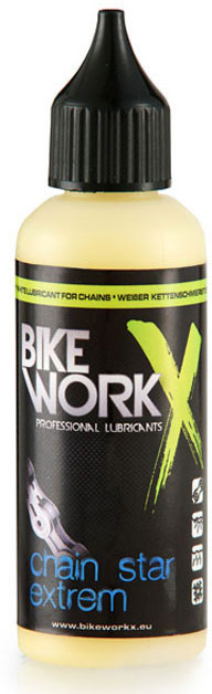 Chain Star "extrem" je bílé mazivo na řetězy. Chain Star "exterm" má oproti verzi "normal" vyšší obsah lepivých složek a je proto vhodný především k mazání řetězů horských kol do "extrémního" prostředí (voda, bláto, sníh). Velmi dobře odolává vodě.